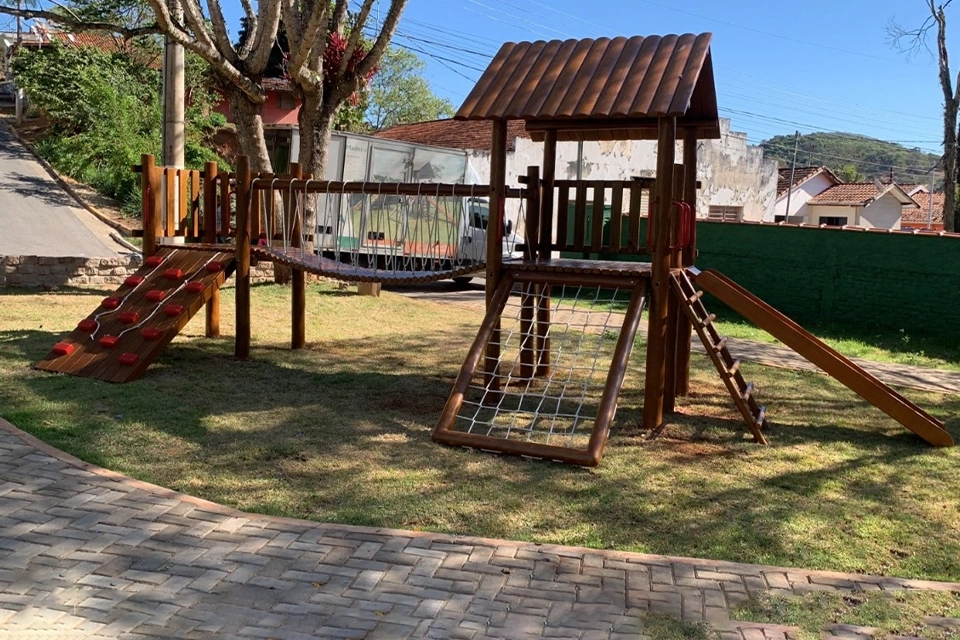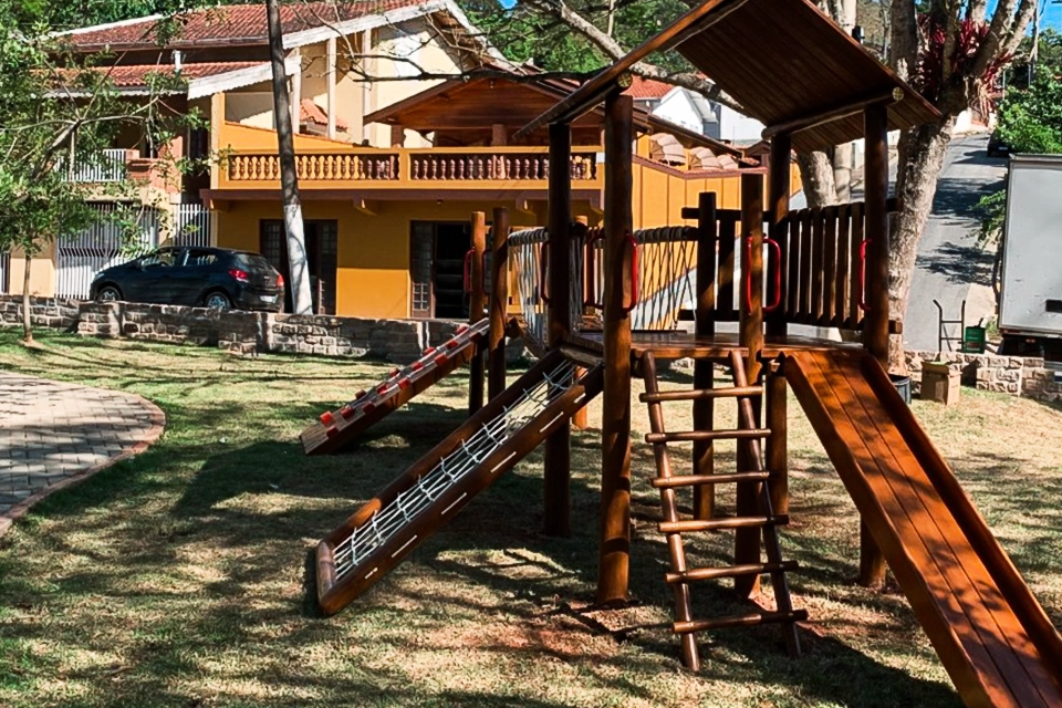 Nossos playgrounds de madeira de lei são construídos com a máxima atenção aos detalhes, garantindo que cada peça seja suave, sem farpas e segura para as crianças.